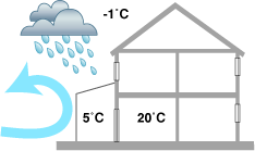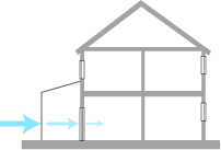 In its minimal form, the sunspace becomes a draught lobby. Heat is lost when doors and windows are opened to the outside. By providing sufficient space for the outer door to be closed before opening the inner door, the draught lobby functions something like an air lock. |