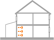 The sunspace functions as an intermediate space between the inside and outside of the building. By effectively adding another layer to the building envelope, the sunspace becomes a thermal buffer rather in the manner of air within a cavity wall. A further effect of the sunspace is to shelter the envelope from wind chill and rain – this factor becomes increasingly important in northerly and exposed locations. |