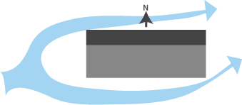 • Minimise wind chill from the prevailing wind by presenting a narrow frontage in that direction. |