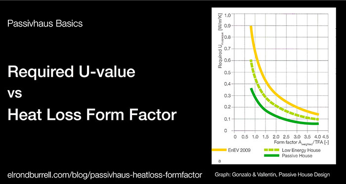 A lower Heat Loss Form Factor requires an exponentially higher (more relaxed) U-value of insulation in the thermal envelope.